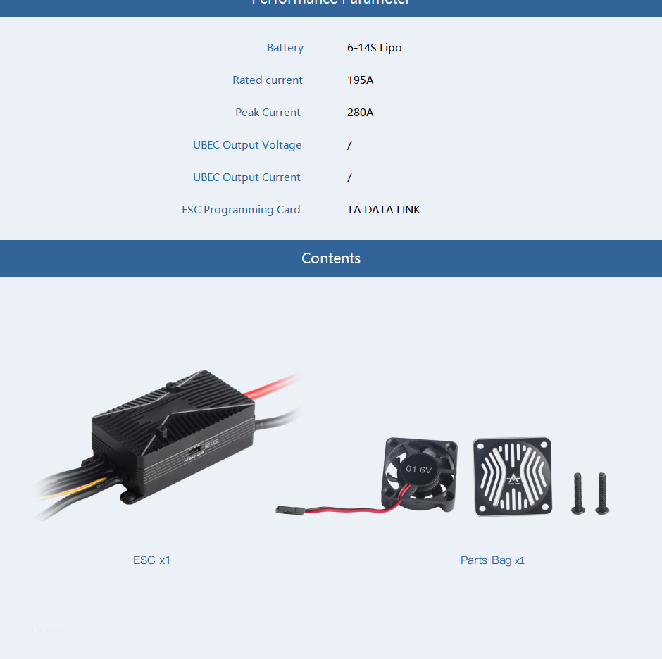 T-MOTOR AT195A 6-14S Fixed Wing ESC For Aircraft