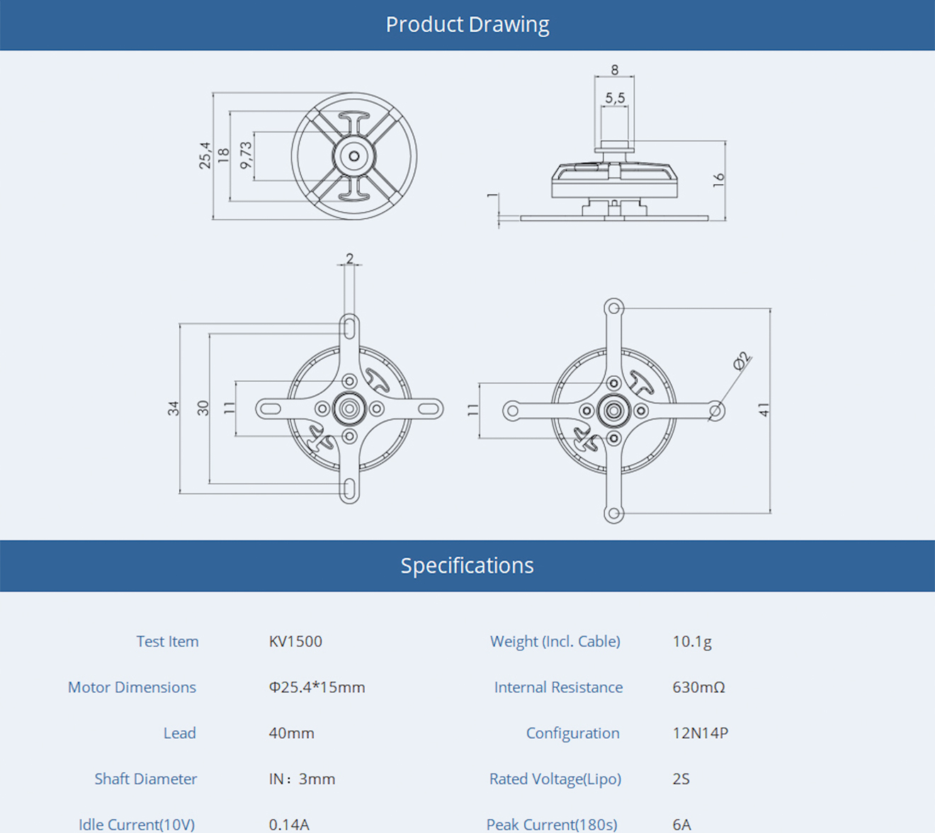 The motor can be used with 1S or 2S Lipo batteries.