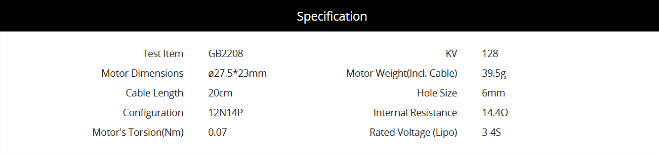 T-MOTOR GB2208 Gimbal Type 3-4S UAV Drone Motor KV128
