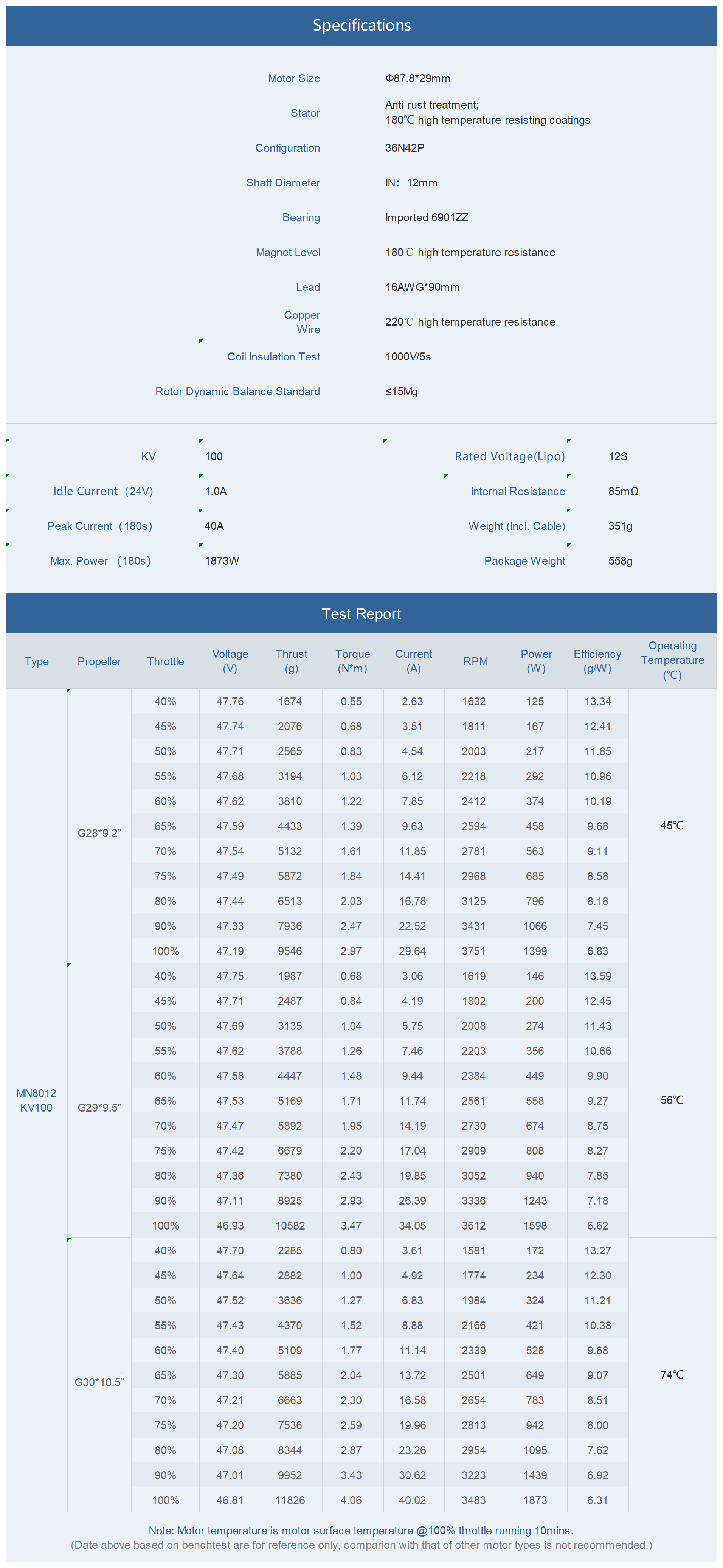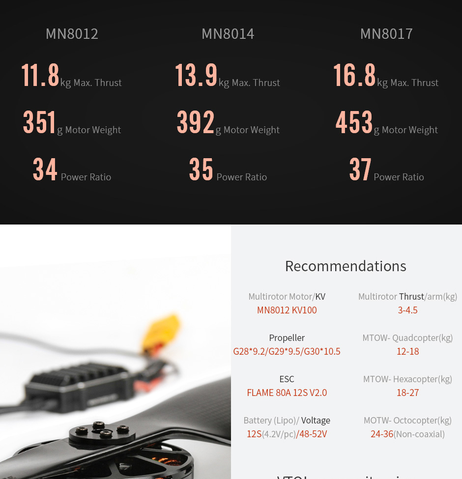 T-MOTOR MN8012 KV100 Multirotor RC Drone VTOL