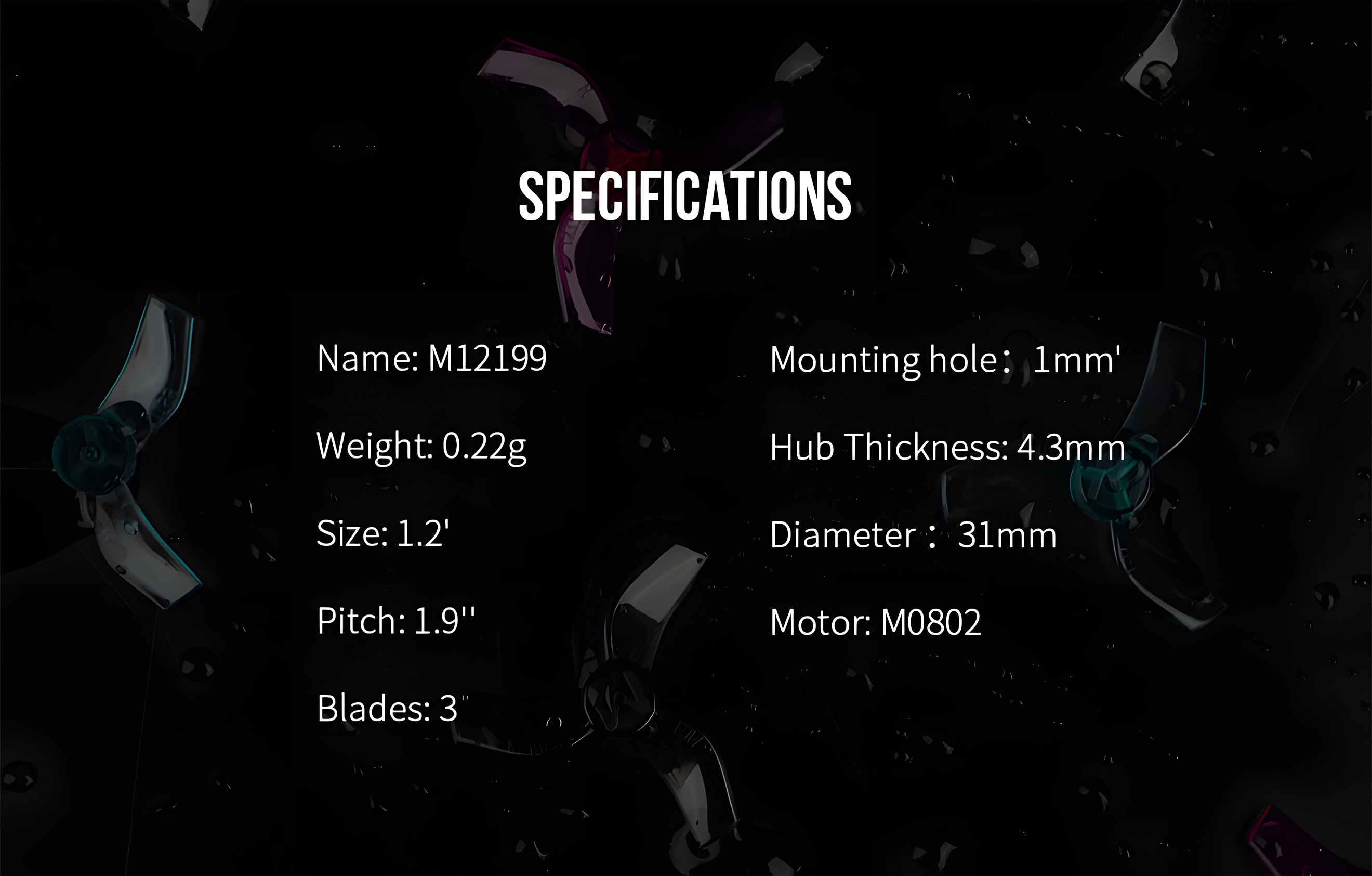 T-MOTOR M12199 Propellers are for 0802 Motors for 65mm Whoops