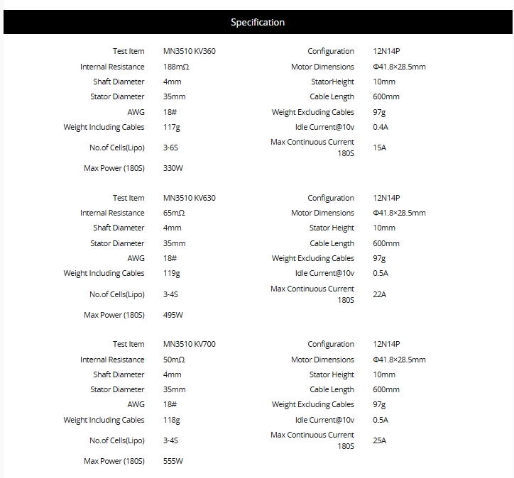 T-MOTOR MN3510 KV700 Navigator Type Multirotor Motors