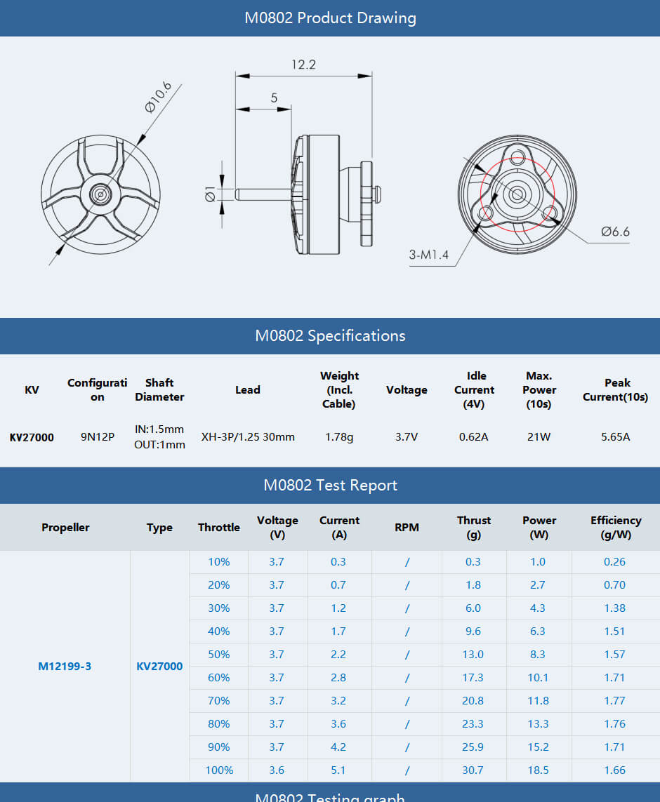 T-HOBBY M0802 0802 27000KV Microwhoop Motor