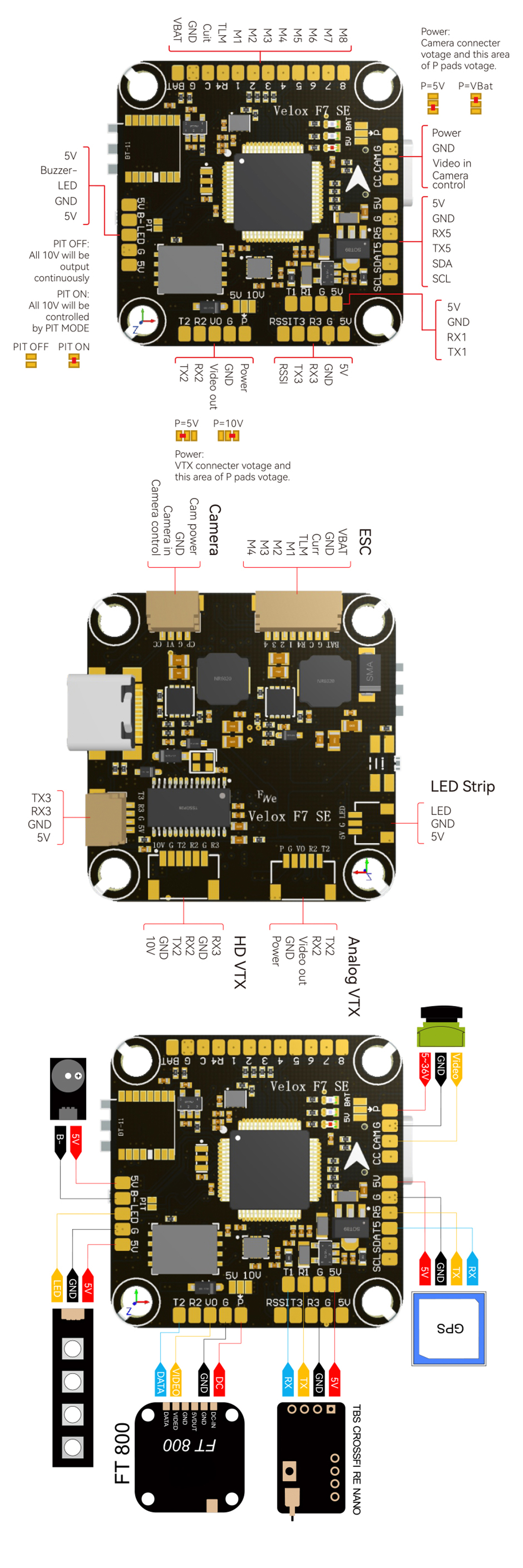 Simplified Wire Order: VELOX F7 SE flight controller ensures easy and standardized wire connections, compatible with V50A SE ESC.