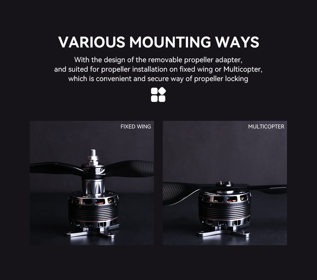 Detachable Propeller Seat – Supports both fixed-wing and multi-rotor propellers for secure and easy locking.