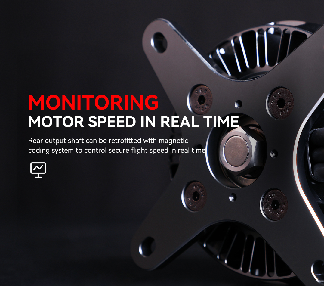 Rear Output Shaft Safety – Compatible with a magnetic braiding system to maintain safe flight speeds.
