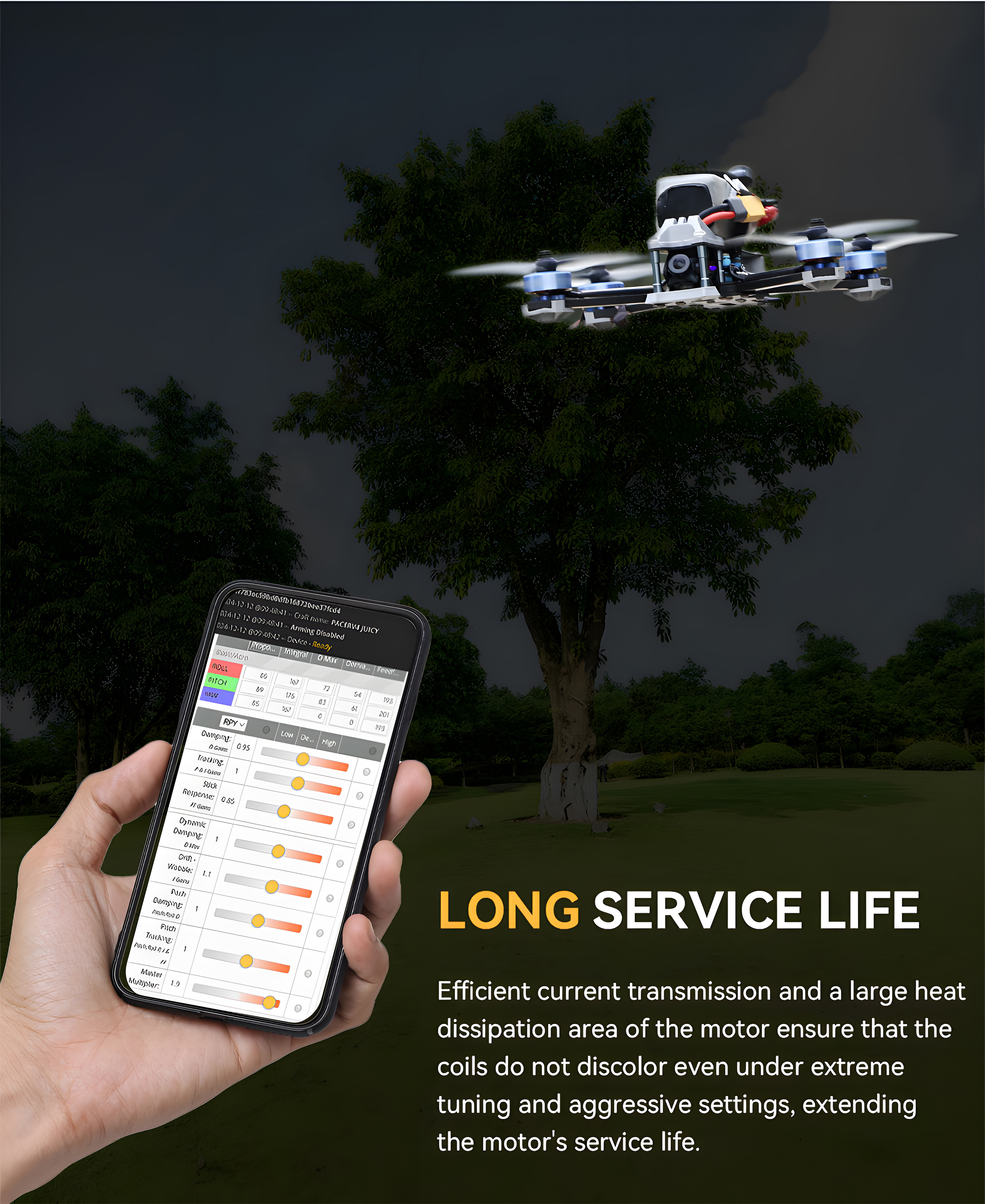 Low Temperature: For JUICY pilots who push extreme tuning (low filtering, high PID values), the motor ensures stable performance even in harsh settings with aggressive tuning. High current handling and excellent heat dissipation prevent coil discoloration.