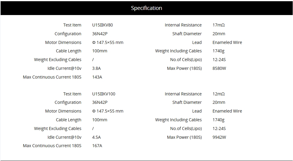 T-MOTOR U15Ⅱ KV100 KV80 Large Waterproof Drone Motor