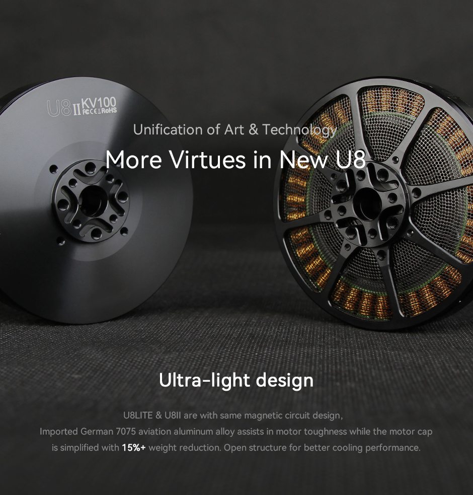 T-MOTOR U8 II Lite KV85/KV100/150/190 U Efficiency Type for Multirotor Drones